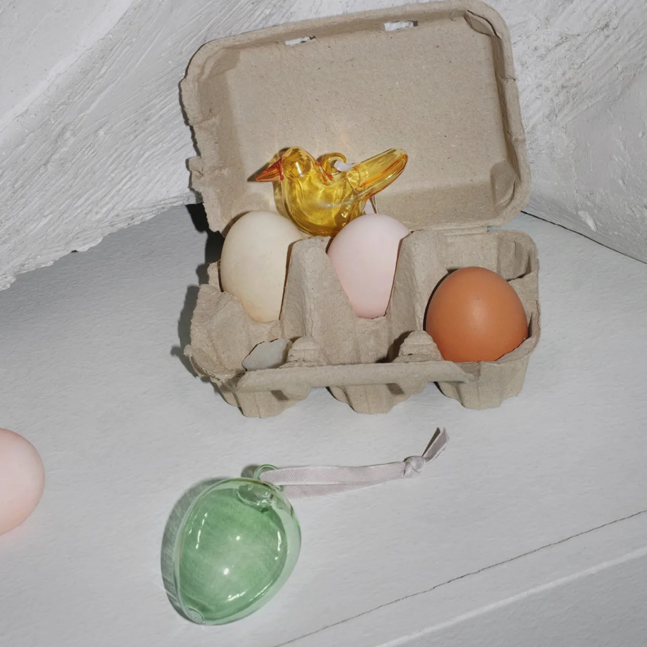 Kaunis sarja sisältää kolme vihreää lasimunaa, jotka tuovat kodin tunnelmaan ripauksen luonnonkauneutta. Nämä lasimunat ovat paitsi tyylikkäitä myös monipuolisia koristeita, jotka sopivat loistavasti erilaisiin sisustustyyleihin. Jokaisessa lasimunassa on upea vihreä väri, joka hehkuu valon osuessa siihen. Ne tuovat huoneeseen raikasta ilmettä ja luovat rauhallisen tunnelman. Lisäksi jokaisessa lasimunassa on tyylikäs harmaa tekstiilinauha, joka mahdollistaa niiden helpon ripustamisen esimerkiksi ikkunaan, oveen tai seinälle. Voit myös sijoittaa ne kauniisti esille esimerkiksi hyllylle tai pöydälle. Lasimunat ovat erinomainen lahjaidea.
