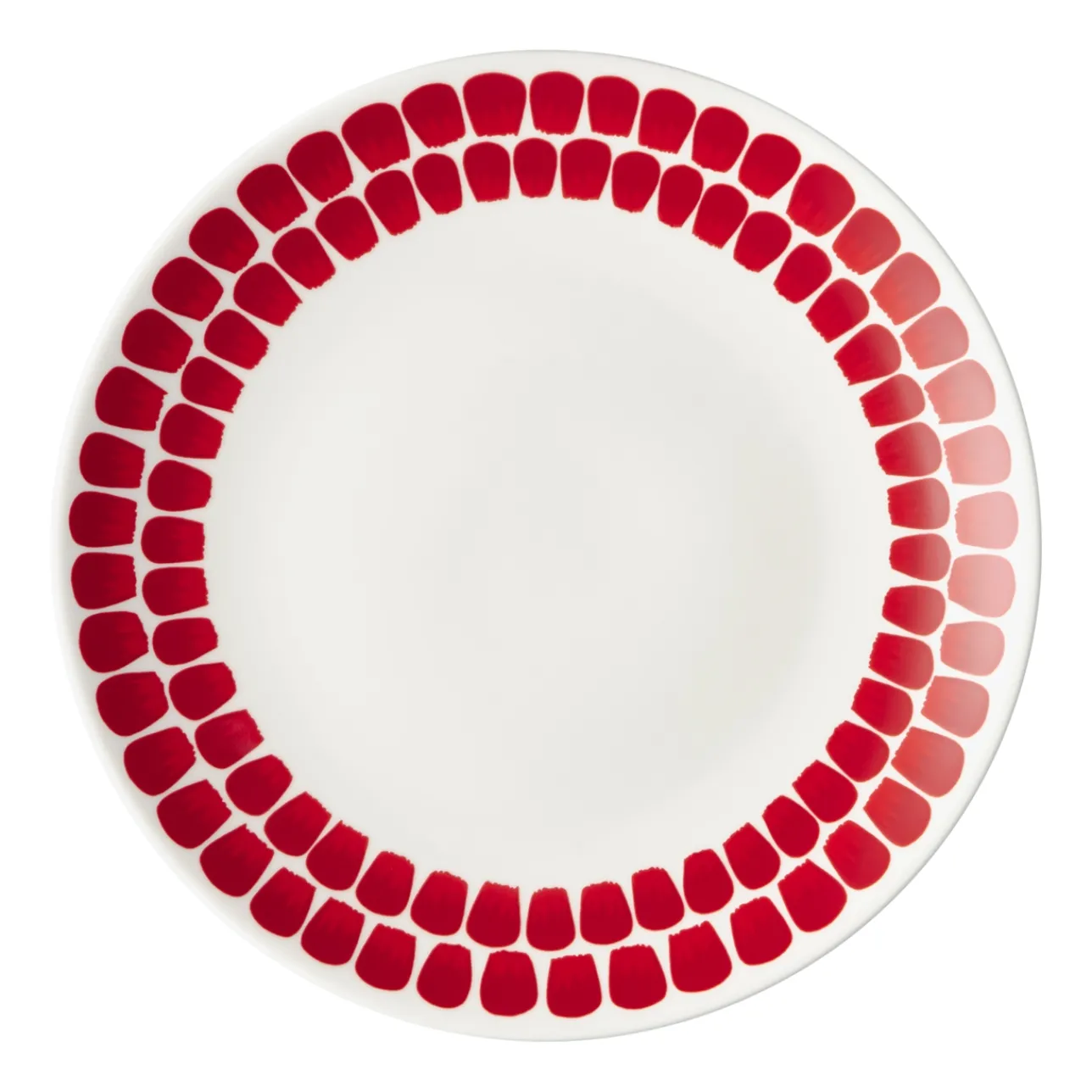 Suomalaisuutta henkivä Tuokio-koriste on saanut tänä jouluna marjaisan punaisen erikoissävyn. Lempeitä pensselinvetoja muistuttava punainen kuvio erottuu edukseen puhtaanvalkoisessa lautasessa. Täysikokoinen ruokalautanen sopii mainiosti sekä arkeen että juhlaan. Sesonkituote.